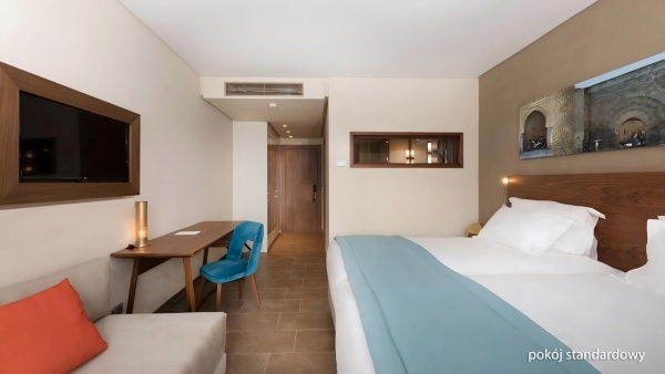 SZOBA: alapértelmezett: 2 fő (1 pótágy lehetséges), kb. 31 m2, egyénileg szabályozható légkondicionáló, fürdőszoba (kád vagy zuhanyzó, WC; hajszárító), vezeték nélküli internet, műholdas TV, telefon, széf; terasz (asztal és székek); duplex: 3 személyes (gyerek részére 1 pótágy lehetséges), kb. 51 m2, kétszintes, nappali a földszinten, hálószoba az emeleten, berendezése mint egy standard szobában; erkély vagy terasz (asztal és székek); lakosztály: 2 fő (1 pótágy lehetséges), kb. 60 m2, equipment as in a standard room; balcony or terrace (table and chairs); duplex room and lakosztály at an extra charge.