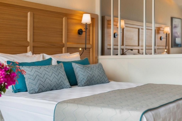 SZOBÁK: 291 szoba o erkély o légkondicionálás o hajszárító o telefon (térítés ellenében) o műholdas TV o minibár (naponta frissítve üdítőitalokkal) o széf o vízforraló o tea- és kávékészítő szett o wifi o standard szobák: kb. 24 m?, max. 3 fő részére, kertre néző vagy oldalról tengerre néző kilátással o családi szobák: kb. 42 m?, max. 4 fő részére, 2 hálószoba ajtóval elválasztva, kertre vagy oldalról tengerre néző kilátással o superior szobák: kb. 24 m?, max. 2 fő részére, kertre vagy oldalról tengerre néző kilátással