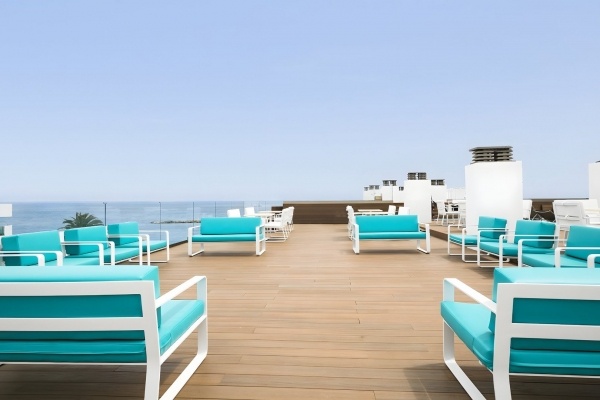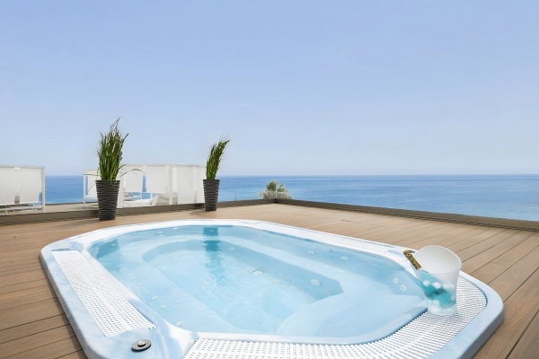 A szálloda előtt elterülő nyilvános, homokos strand hosszú partszakasszal és enyhe lejtéssel vezet a tengerhez, így ideális a kényelmes fürdőzéshez és napozáshoz. A strand a sétányon keresztül könnyen megközelíthető, a vendégek pedig díj ellenében napernyőket és napozóágyakat vehetnek igénybe.