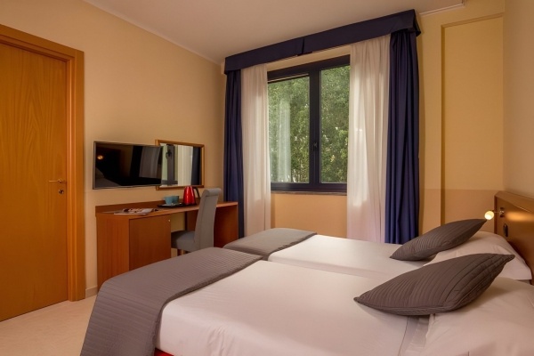 A szálloda csendes, mégis kiváló elhelyezkedésének köszönhetően könnyedén felfedezheted Róma legszebb látnivalóit, hiszen mindössze kb. 7 km-re található a városközponttól, miközben alig 500 méteren belül boltok, éttermek és bárok várnak. A Spanyol lépcső, a Spanyol tér és a Forum Romanum kb. 6 km-re, a Colosseum és a Pantheon kb. 7 km-re, míg a Vatikán kb. 10 km-re érhető el. A közlekedés egyszerű és gyors, hiszen a legközelebbi buszmegálló csupán kb. 200 méterre helyezkedik el. A repülőterek is könnyen megközelíthetők: a Róma-Ciampino repülőtér kb. 20 km-re, a Róma-Fiumicino repülőtér pedig kb. 50 km-re található, így akár érkezéskor, akár induláskor kényelmes utazásra számíthatsz.