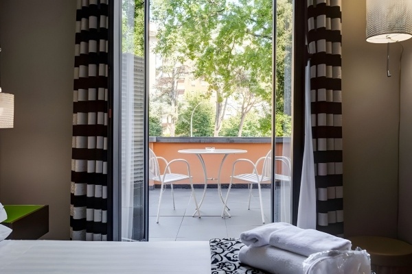 A szálloda Róma csendesebb városrészében, a központtól körülbelül 5 km-re található, így ideális választás azoknak, akik nyugodt pihenésre vágynak, de szeretnék könnyen elérni a város nevezetességeit. A közelben éttermek, bárok és üzletek is találhatók, mindössze néhány perc sétára. A Basilica Papale di Santa Maria Maggiore 2,7 km-re, a Colosseum 3,5 km-re, a Forum Romanum 4 km-re, míg a Trevi-kút és a Pantheon nagyjából 5-5,5 km-re helyezkedik el. A Navona tér és a Castel Sant'Angelo is könnyen megközelíthető, mintegy 6-7 km távolságban. A közlekedés kényelmes: a Re di Roma metróállomás 300 méterre, a San Giovanni metróállomás 900 méterre, a buszmegálló pedig mindössze 400 méterre található. A Róma-Ciampino repülőtér 12 km-re, a Róma-Fiumicino repülőtér pedig 27 km-re fekszik.