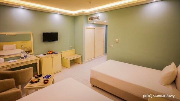A standard szoba kényelmes elhelyezést biztosít két fő részére, lehetőséggel két pótágy elhelyezésére felnőtt vagy gyermek számára, egyszemélyes ágy vagy kanapé formájában. A tágas, körülbelül 32 m?-es szobában egyénileg szabályozható légkondicionálás működik, valamint fürdőszoba található káddal vagy zuhanyzóval, WC-vel és hajszárítóval. A felszereltség része a műholdas televízió, telefon, széf, valamint kávé- és teafőző készlet. Igény esetén, előzetes rendelés alapján, ingyenesen biztosított kiságy 2 év alatti gyermekek számára. A szoba erkélyes vagy teraszos, ahol asztal és székek is helyet kapnak. A minibár térítés ellenében áll rendelkezésre.