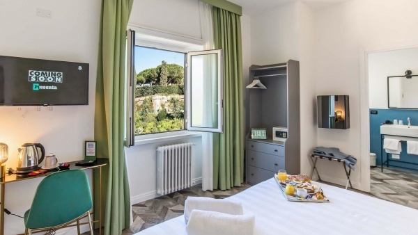 A szálloda Róma egyik legelbűvölőbb pontján, a festői Janiculum-dombon található, ahonnan gyönyörű kilátás nyílik a városra. A központ mindössze 3 km-re fekszik, így a főbb látnivalók könnyen elérhetők, miközben a környék nyugodt és zöldövezeti hangulatot áraszt. A közelben, mintegy 200 méterre, üzletek és hangulatos éttermek várják a vendégeket. A Szent Péter-bazilika mindössze 1 km-re található, míg a Pantheon, a Trevi-kút, a Piazza di Spagna és a Capitolium körülbelül 3 km-re érhetők el. A Forum Romanum kb. 3,5 km-re, a Colosseum pedig 4 km-re helyezkedik el. A Róma-Fiumicino repülőtér mintegy 27 km-re, a Róma-Ciampino repülőtér pedig körülbelül 35 km-re található. A közlekedés is kényelmes: a legközelebbi buszmegálló 280 méterre, a S. Pietro vasútállomás pedig mindössze 450 méterre található a szállodától.