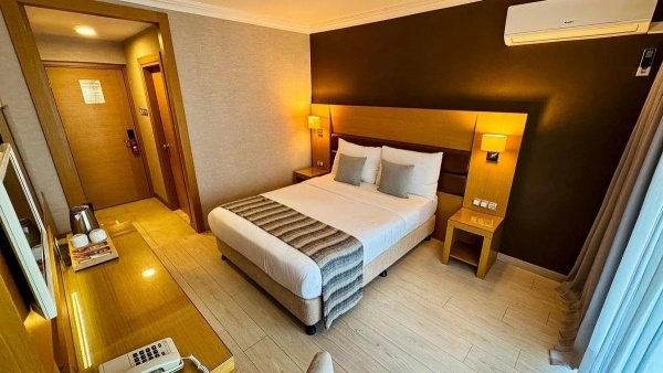 Kétágyas szoba: 2 fő (1 pótágy lehetséges), kb. 18 m? légkondicionált, fürdőszoba (zuhany, WC, hajszárító) vezeték nélküli internet, műholdas TV, telefon, kávé/tea készítési lehetőség, érkezés előtt kérésre ingyenes gyermekágy 2 éves korig, felár ellenében: széf, minibár (ingyenes üdvözlő víz), erkély (asztal és székek).