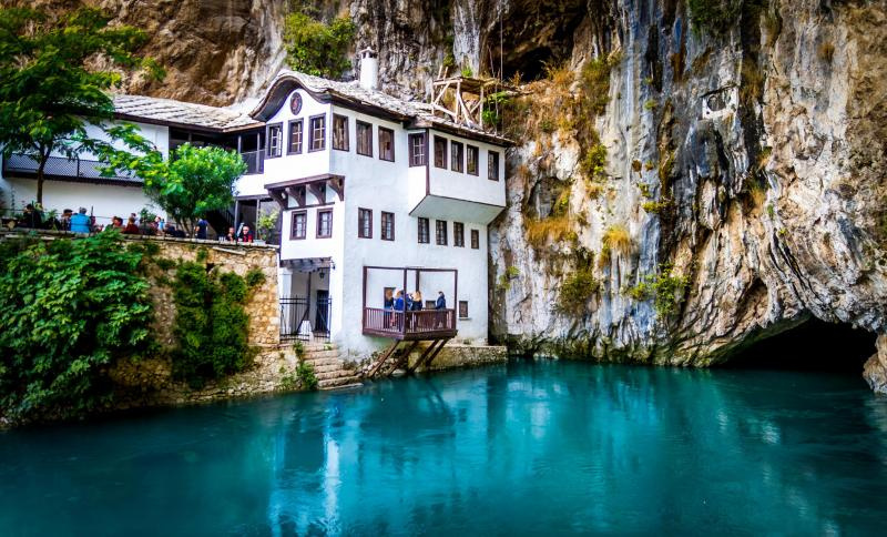 Ízletes reggeli után útnak indulunk, a Neretva partján fekvő városok gyöngyszeméhez, a tragikus sorsú Mostar-hoz. A jellegzetes, hangulatos muszlim utcákon sétálva elérjük a lenyűgöző, újjáépített kőhidat, mely a kultúrákat kapcsolja össze Boszniában. Ez a történelmi jelentőségű híd a Világörökség része lett. Majd Koska Mehmed Pasa dzsámi szépségét nézzük meg, mely Mostar legismertebb dzsámijának számít. A bosnyák házba is benézünk, hogy jobban megérthessük a helyi lakosságot. Szabad időben mindenki megkóstolhat egy igazi bosnyák kávét és süteményt, vagy csónakázhat (térítés ellenében) a Neretva folyón, a híres híd allatt. Tovább utazás a közelben található gyönyörű környezetben található Blagaj-ba, a sziklafalba épült derviskolostorba érkezünk, mely a Buna folyó forrásánál áll. A pazar látvány a múltba repít minket.