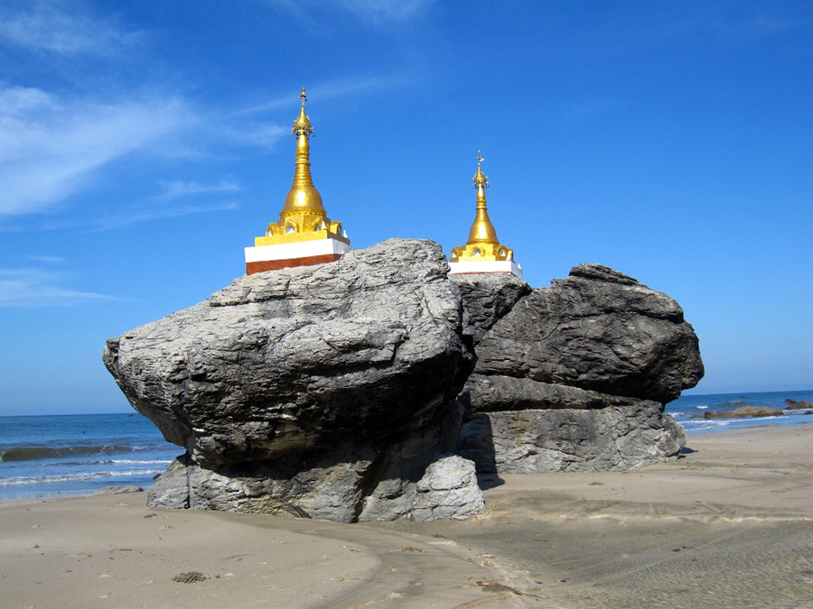 Kyaikhtiyo, az Arany Szikla szentély temploma Burma egyik legfőbb buddhista zarándokhelye. Alapítása - a történet szerint - még Buddha életében, 2560 évvel ezelőtt történt.
