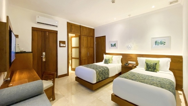 A Deluxe kertre néző szoba kényelmes elhelyezést biztosít 2 fő részére (1 pótágy lehetséges) és körülbelül 39 m?-es területen helyezkedik el. A szoba egyénileg szabályozható légkondicionálással rendelkezik, valamint fürdőszobával (kád vagy zuhanyzó, WC, hajszárító), vezeték nélküli internet-hozzáféréssel, műholdas televízióval, széfet és kávé/tea készletet is található benne. 2 év alatti gyermekek számára ingyenes kiságy biztosított, előzetes kérésre. A szobához erkély vagy terasz tartozik, asztallal és székekkel, kertre néző kilátással. Térítés ellenében telefon és minibár (fogyasztás szerint) vehető igénybe.