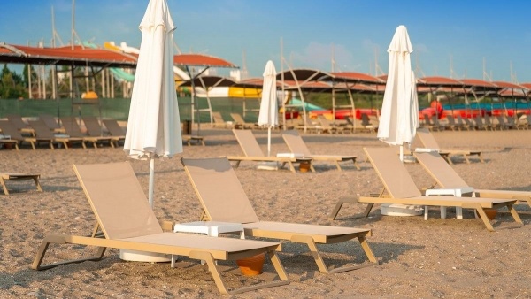 A szállodának saját partszakasza van, közvetlenül a parton és saját, csúszdás aquapark is tartozik hozzá. A partszakasz kb. 200 m hosszú, jellemzően apró kavicsos talajjal. Megközelítésére a szálloda alagútján keresztül van lehetőség. A parton található törölközők, napágyak és napernyők a vendégek számára ingyenesen használhatóak.