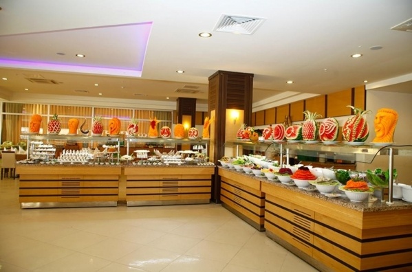 - All Inclusive: minden étkezés büférendszerben, kávé, tea és palackozott üdítők reggelinél, üdítők, sör, bor és egyes helyi alkoholos italok ebédnél és vacsoránál, éjféli leves 23:00 és 24:00 óra között, a strandbárban 12:30 és 14:30 között snack-ételek, 11:30 és 16:00 óra között gözleme, a snack-bárban 12:00 és 16:00 óra között snack-ételek, 16:00 és 17:00 óra között édes sütemények és fagylaltok, üdítők, sör, bor és egyes helyi alkoholos italok a lobby-bárban és a pool-bárban 10:00 és 24:00 óra között, a strandbárban 10:00 és 17:00 óra között, a snack-bárban 12:00 és 17:00 óra között, vacsorázni tartózkodásonként 1x ingyenesen az a'la carte-éttermek egyikében is lehetséges 19:00 és 21:30 óra között (előzetes foglalás szükséges). Az All Inclusive szállodák szolgáltatásai bizonyos részletekben szállodánként eltérhetnek.