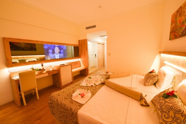 Ultra all inclusive: reggeli (07:00 h-10:00 h), késői reggeli (10:00 h-11:00 h), ebéd (13:00 h-14:30 h), vacsora (19:00 h-21:00 h), éjszakai büfé (00:00 h-01:00 h), délutáni snack (12:00 h-15:00 h), délutáni kávé, tea és keksz (15:00 h-16:00 h); korlátlan helyi alkoholos és alkoholmentes italok (10.00 h-01.00 h között). A'la carte éttermek (olasz és török konyha) előzetes foglalással, heti 1 alkalommal ingyenesen.