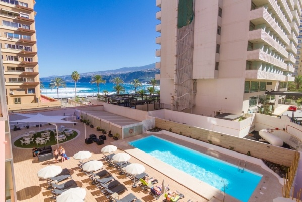 Leírás: A gyönyörű kanári belsőépítészeti stílussal rendelkező szálloda minden ízében az óceánt idézi. A hotel kiváló helyen fekszik Puerto de la Cruz városában, közel az óceánparthoz, valamint mindössze 3 perc sétára a Lago Martiánez strandtól. A szállodából gyönyörű kilátásnyílik Spanyolország legmagasabb pontjára a Pico del Teide-re és az Atlanti-óceánra is.