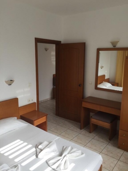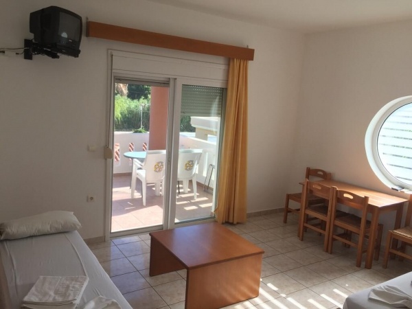 Elhelyezés: 2 fős stúdiókban, mely nem pótágyazható és 3-4 ágyas apartman, kellemesen berendezett, kényelmes, két légterű helyiség (hálószoba 1 db dupla ággyal, és nappali, 2 db szófa jellegű ággyal), tévé, telefon, konyhasarok, hűtő, zuhanyzó, balkon/terasz. Babaágy 2,5 eur/nap . Térítés ellenében légkondicionáló és széf használható és fizetendő a helyszínen.
