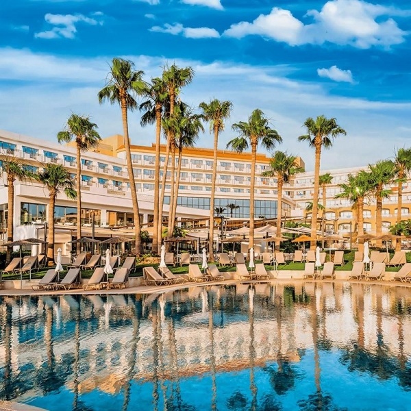 Utazás repülővel Budapestről Ciprusra. Érkezés Páfoszra. Transzfer a hotelbe. Szállás: St. George Hotel 4* vagy hasonló.