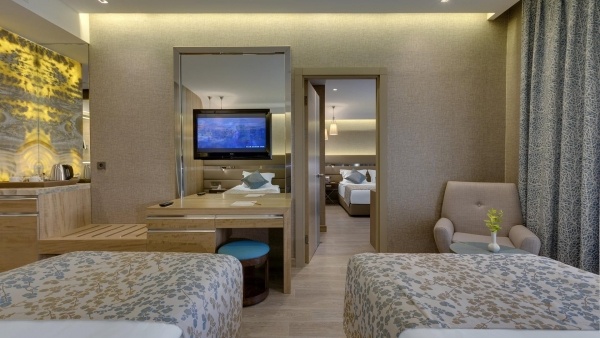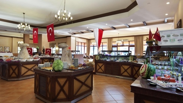 - All Inclusive Plus: minden étkezés büférendszerben, reggelinél friss gyümölcslevek, a snack-étteremben 12:30 és 15.00 óra között gözleme és palacsinta, snack-ételek az étteremben és strandbárban 10:00 és 18:00 óra, valamint 12:30 és 14:30 óra között, snack-bár az aquaparkban 12:30 és 14:30 óra között, diszkó 23:00 és 02:00 óra között, a lobby-bárban 10:00 és 11:00 óra között villásreggeli, 16:30 és 17:30 óra között keksz és fagylalt, 16:00 és 24:00 óra között koktélok, 00:15 és 01:15 óra között éjszakai snackek, pool-bár 10:00 és 18:00 óra között, a'la carte-étterem 19:00 és 21:00 óra között (tartózkodásonként 1x ingyenesen, előzetes foglalással), helyi és egyes import alkoholos és alkoholmentes italok az egyes bárok nyitvatartása szerint 10:00 és 02:00 óra között. A vacsoránál alkalomhoz illő viselet ajánlott. Az All Inclusive szállodák szolgáltatásai bizonyos részletekben szállodánként eltérhetnek.
