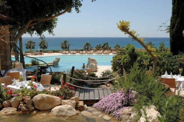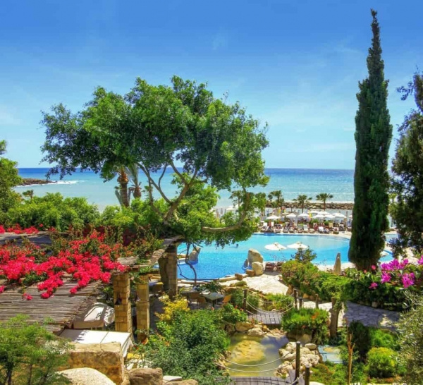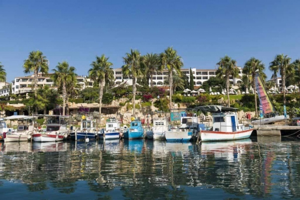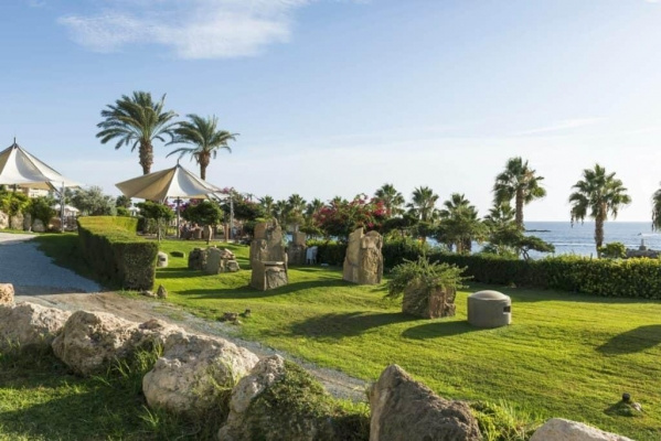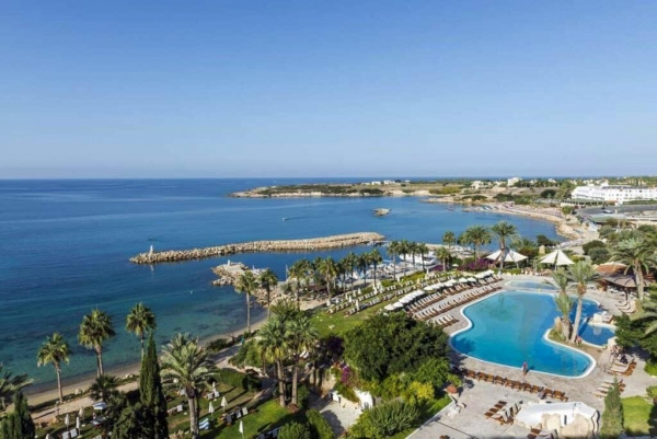 Fekvése: Paphos üdülőövezeti, Coral Bay elnevezésű részén, közvetlenül a tengerparton (öbölben) épült, talán a térség egyik legjobb fekvésű, több épületegységből álló és hatalmas parkosított területen elhelyezkedő, rendkívül patinás, karibias stílusú és hangulatú, kettőszáztizenhat szobás szálloda. A szálloda előtti található a környék egyik legszebb természetes homokos strandja, illetve egy kishajókikötő is. A szálloda ideális mind a családok, mind a párok számára, akik egy nyugodt tengerparti pihenésre vágynak. A szálloda a kristálytiszta víz, homokos partok és a környező hegyek látványának tökéletes kombinációját kínálja. Paphos városközpontja és a kikötő 8 km-re fekszik. Buszpályaudvar a szálloda mellett található (közvetlen járatok a Paphosi kikötőbe).