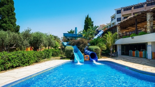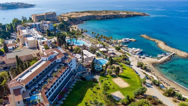 A szálloda festői domboldalon, a Coral Bay elegáns szállodai negyedében, Pegeia kisvárosában található, mindössze mintegy 10 kilométerre Pafostól. A legközelebbi üzletek körülbelül 500 méterre helyezkednek el, így a mindennapi szükségletek könnyen elérhetők. A környék gazdag történelmi és természeti látnivalókban: a híres Pano Pafos és az ókori Királyi Sírkamrák kb. 9 km-re, a hangulatos Kato Pafos kikötője és az archeológiai park kb. 12 km-re, míg az Aphrodite Water Park kb. 15 km-re található. A közlekedés rendkívül kényelmes, hiszen a hotel előtt buszmegálló is van, így a város és a környék látnivalói könnyen megközelíthetők. A repülőtér Pafosban kb. 30 km-re, Larnacában pedig körülbelül 160 km-re fekszik.