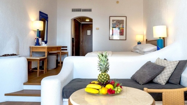 A szálloda elegánsan berendezett, tágas szobái kényelmes pihenést biztosítanak minden vendég számára. A standard szobák kb. 28 m?-esek, fűthetők november és március között, illetve légkondicionáltak áprilistól októberig. Mindegyik fürdőszobával (káddal, WC-vel, hajszárítóval és kozmetikai csomaggal), vezeték nélküli internettel, műholdas televízióval, telefonnal, kávé- és teafőző készlettel, valamint széffel felszerelt. A szobákhoz erkély vagy terasz tartozik asztallal és székekkel, kérésre pedig kiságy is biztosítható 2 év alatti gyermekek számára. Felár ellenében minibár is igénybe vehető. A standard szobák elérhetők oldalról vagy közvetlenül tengerre néző kilátással is. A tágasabb, kb. 33 m?-es stúdiók akár 1-2 pótággyal is felszerelhetők, és erkélyük vagy teraszuk tengerre néz, míg a junior lakosztályok 38 m?-esek, tengerre néző kilátással és két gyermek részére pótágyazhatóak. A garden studio szobák hasonló felszereltségűek, de kertkapcsolattal és terasszal rendelkeznek, ahonnan közvetlen kilátás nyílik a tengerre. Minden szállástípus harmonikus berendezéssel, kellemes színekkel és modern kényelmi szolgáltatásokkal biztosítja az ideális kikapcsolódást.