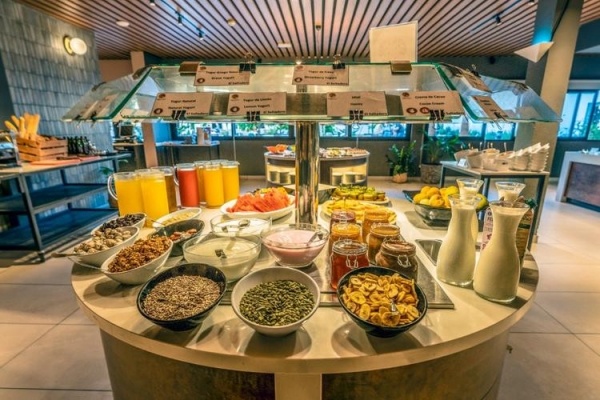 Étkezés: o El Saltadero büféétterem Ez a svédasztalos étterem reggeli- és vacsoraidőben tart nyitva a testvérszállodában. A teraszon beltéri és kültéri ülőhelyek találhatók. o Oasis medencebár A medencebár a testvérszállodában található, és ebédidőben harapnivalókat szolgálfel. o SOLAR étterem Ez az étterem a testvérszállodában található. Hamburgert, friss halat és grillezett húsételeket kínál. o A Solar étterem különleges gasztronómiai élményt kínál, ahol a helyi és nemzetközi konyha ízei találkoznak, mindezt lenyűgöző tengerre néző kilátással koronázza meg. Az étkezés után érdemes felkeresni a tetőteraszt, ahol egy ital mellett élőzenét is élvezhet. Akik bőségesebb választékra vágynak, azok számára a svédasztalos étterem ideális, ahol reggelire és vacsorára friss pékáruk széles választékát kínálják. o A nap folyamán a medencebárban harapnivalók és frissítő italok állnak rendelkezésre. o Azoknak pedig, akik saját maguk szeretnének főzni, minden apartman teljesen felszerelt konyhasarokkal rendelkezik, így a kulináris élvezeteket a saját ízlésük szerint alakíthatják.