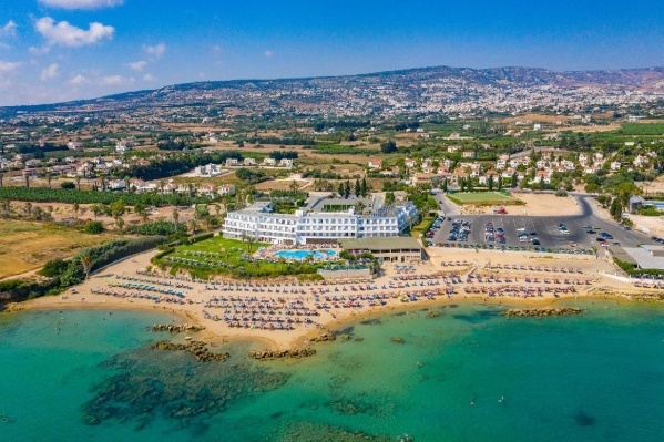 Paphos vonzáskörzetében, a Coral Bay-en, festői környezetben, közvetlenül a homokos tengerparton épült, nagy kerttel rendelkező ,,A" kategóriás apartmanhotel.