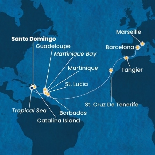 | 2. nap | Catalina Island (Dominikai Köztársaság) | 08:00 | 17:30 |