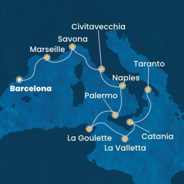 | 9. nap | Catania (Szicília) | 07:00 | 17:00 |