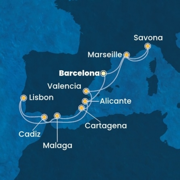 | 13. nap | Barcelona (Spanyolország) | 07:00 |