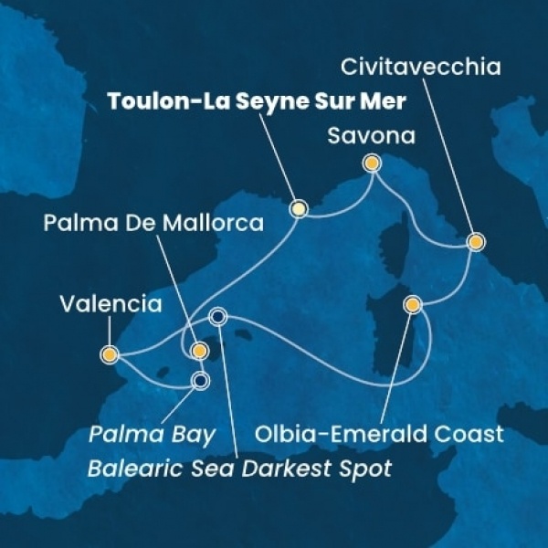 | 8. nap | Toulon-La Seyne sur Mer (Franciaország) | 07:30 |