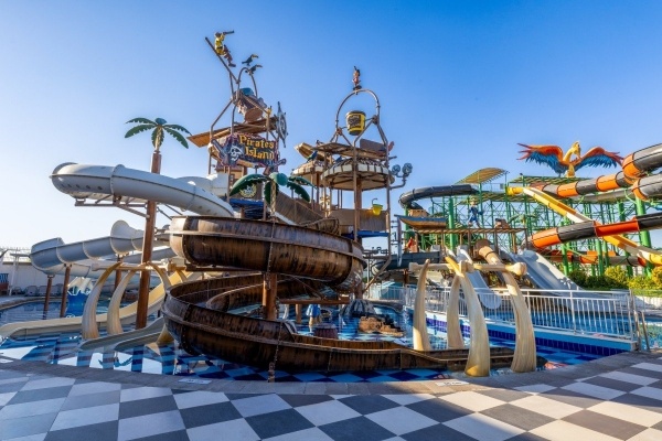 3 medence, 2 medence csúszdákkal (felnőtt és gyerek), 2 beltéri medence (a medencék 20:00 h és 08.00 h között zárva tartanak!), teniszpályák, Bowling,Pingpong, Dart, Kosárlabda, Röplabda, Léghoki,Minigolf, Kispályás focipálya, Biliárd,Szörfözés,Ejtőernyőzés, Vízibicikli, Aerobik, Edzőterem,