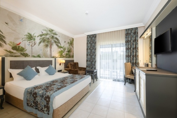 Ötcsillagos, 2019-ben részben felújított szálloda, 13 épület saját, tágas lobbyval, 24 órás recepcióval. Főétterem - svédasztalos ételek, 3 ? la carte étterem (térítés ellenében, foglalás szükséges) - olasz, török és tengeri ételek. 6 bár, köztük medencebár , snack bár és strandbár. Több korosztálynak megfelelő medence, egy fedett medence, aquapark, csúszdák gyerekeknek és felnőtteknek, mini medence a kisebb gyerekeknek, ingyenes napernyők, napozóágyak és törölközők a medencéknél. Konferenciaközpont 150 fő részére, terasz, kert, ingyenes vezeték nélküli internet. Felár ellenében: orvos, fodrászat, mosoda, fényképész, autóbérlés. Visa, MasterCard. A felsorolt szolgáltatásokat és ellátást, azok idősávjának illetve helyének biztosítását a szálloda - előzetes bejelentés nélkül - bármikor módosíthatja vagy bizonyos esetekben korlátozhatja, szünetelteheti (pl. szezonalitás, időjárási viszonyok, vis major, stb.)