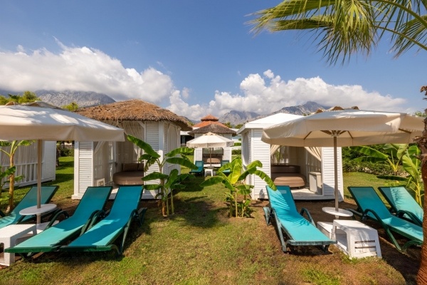 A privát, széles, homokos-kavicsos strand kb. 200 m-re található a főépülettől. A strandot egy kerten és egy hídon keresztül vezető ösvényen lehet elérni, amely csak a szálloda vendégei számára van fenntartva. A strand elnyerte a Kék zászló tanúsítványt. A strand területén szabadtéri medence, snackétterem és Ultra All Inclusive bár is található. Ingyenes napozóágyak, napernyők, matracok és törölközők, pavilonok (térítés ellenében).