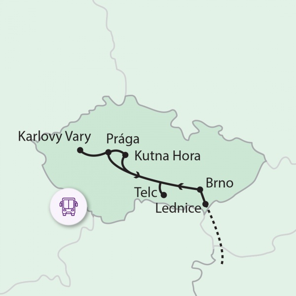 Ingyenes kora reggeli transzferek indulnak Szegedről, Debrecenből, Miskolcról és Pécsről Budapestre. Mindhárom útvonalon további felszállási lehetőségeket biztosítunk. A főváros után rajkai határátkeléssel érkezünk Szlovákiába. A Duna fölött áthaladva elénk tárul a főváros, Pozsony látképe a hidakkal és a város fölé magasodó várral. Tovább utazva a cseh határt átlépve lekanyarodunk Lednicébe, mely egyben első világörökségi helyszínünk. Az angol gótika és a romantikus stílus keveréke a nagyon szépen felújított kastély. Az itt látható fa kidolgozások és csillárok kiváló művészek munkái. Délután, Brnóban, az ország második legnagyobb városában tartunk gyalogos városnézést. Házainak stílusa a reneszánsz kortól a modernig terjed. A főtér közepén egy hatalmas barokk pestisoszlop található. Innen nem messze kiemelkedik a házak közé szorított impozáns, neogótikus Szent Jakab-templom jellegzetes hagymakupolájával, amelyet egy tűhegyes torony koronáz, így ez a város legmagasabb épülete. A belváros egyik dombján emelkedik a lenyűgöző gótikus Szent Péter és Pál Székesegyház. Este érkezünk Prágába a szállásunkra (3 éj).