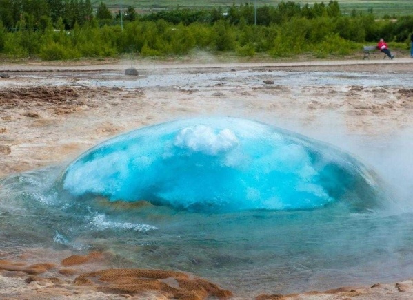 Kora délután a nagy Geysir-t nézzük meg, amely a legrégebbi gejzír, melyet írásos emlékek rögzítettek. A kitörése az évszázadok alatt folyamatosan változó volt, előfordult, hogy egyáltalán nem működött. 2000-ben megdöntötte az összes addigi rekordját és az aktív vulkáni működésnek köszönhetően két napig közel 120 méter magasba lövellte ki a forró vizet, maga a gejzír elnevezés is innen származik. A másik nevezetes gejzír, amit itt láthatunk a Strokkur, amely sűrűbben, ,,menetrend szerint" 6-10 percenként szökőkútként tör a magasba, a vízoszlop akár 40 méter magas is lehet.