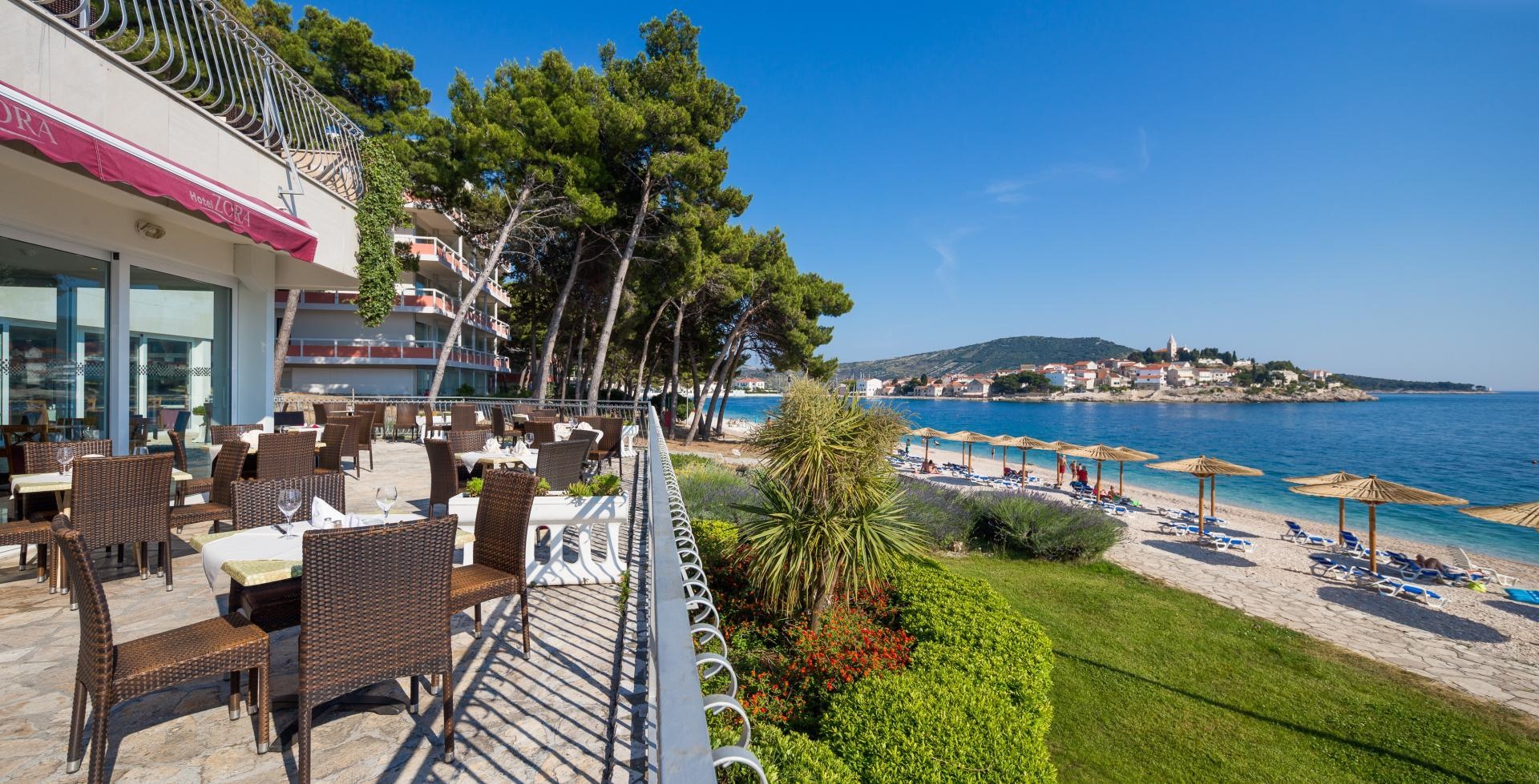 Szállás: Primosten, H.ZORA 3*** Szálloda a lassan mélyülő strand mellett található.