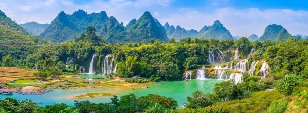 Reggeli a szállodában, majd útnak indulunk a Detian-vízeséshez, mely Vietnám és Kína határán fekszik, és a negyedik legnagyobb határmenti vízesés az Iguazu, a Victoria és a Niagara után. A vízesés 75 m magas és 200 m széles, a tetején kis Buddhista szentély áll, mely őrzi e meghitt táj nyugalmát. Vízhozama a nyári monszunidőszak alatt a legnagyobb, akkor az óriási víztömeg őrült tempóban zuhan le a hegyről, máskor viszont békésen zubog alá. Ha az időjárás engedi, akkor a helyiek által kedvelt "bambusz tutajokkal" egész közel merészkedünk a vízeséshez, és garantáltan senki nem marad szárazon. A környező Mingshi karsztvidéket "mini Guilin"-nek is nevezik, hiszen a kúpos mészkősziklák a kékeszöld vízű folyók ölelésében hasonló látványt nyújtanak. Mindezt mi is megtapasztalhatjuk, ahogy ismét bambusz tutajra szállunk, és a Mingshi-folyón elhajózunk a mesebeli sziklák, hangulatos kis falvak és rizsföldek között (kb. 1 órás program). Vacsora és szállás Mingshi falu közelében, egy tradicionális szállodában (1 éj).