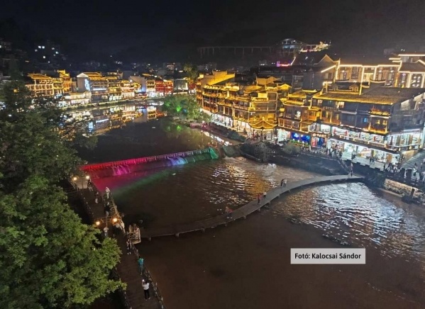 Reggeli után átsétálhatunk a 2016-ban átadott, a Zhangjiajie Grand Canyon felett átvezető üveghídon, mely készítésekor a világ leghosszabb (430 m) és legmagasabb (300 m) gyalogos üveghídja lett. Ezután a Xiangxi Tujia és Miao Autonóm Prefektúra egyik legősibb városába, a Tuojiang-folyó két partján épült, festői, Fenghuang városába utazunk. Vacsora egy helyi étteremben. Szállás Fenghuangban (1 éj).