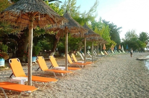 Kellemes családi vezetésű szálloda közvetlenül a gyönyörű homokos és kavicsos strand mellett, tavernával és terasszal. A közelben Nidri központja, a kikötő, valamint számos üzlet és étterem. A sétálóutcától kicsit messzebb helyezkedik el.