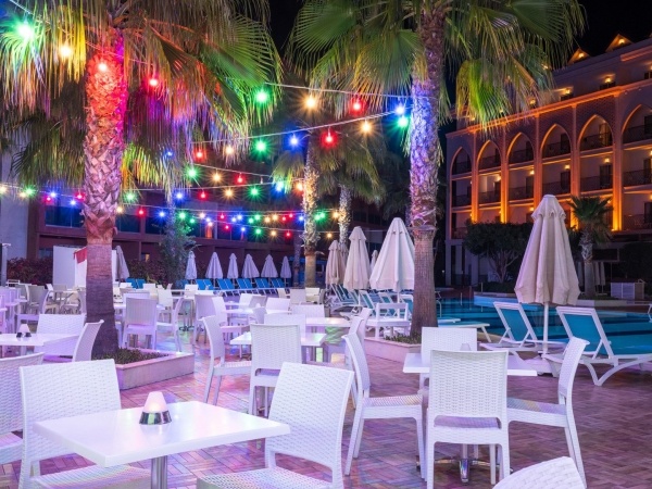 All inclusive vendéglátás: reggeli, ebéd és vacsora büfé formájában, snackek, helyi alkoholos és alkoholmentes italok, több bárban. Két ? la carte étterem (oszmán és mediterrán stílusú) a fő étterem mellett.