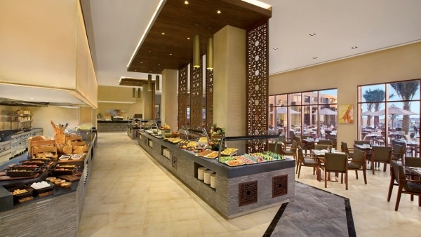 ALL INCLUSIVE (felár ellenében): svédasztalos reggeli (6.00-11.00), svédasztalos ebéd (12.30-15.30), svédasztalos vacsora (18.00-22.30) az Al Marjan főétteremben; üdítők (7.00-24.00) és helyi alkoholos italok (12.00-24.00) a megjelölt bárokban; 60 AED kedvezmény az ? la carte éttermekben; all-inclusive csuklópánt viselése kötelező.