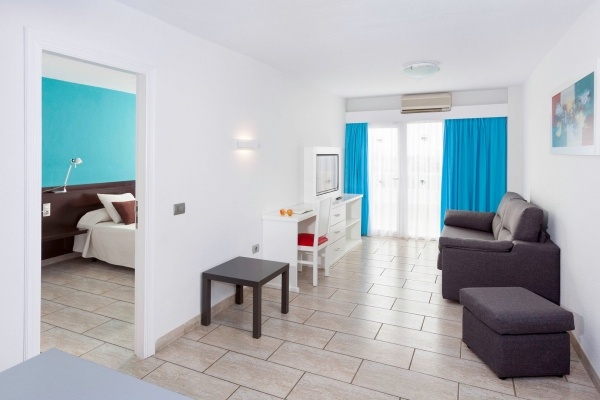Egy hálószobás apartman: 2 fő részére, 1 pótágy felnőttnek vagy 2 pótágy gyerekeknek. Mérete kb. 47 m?. Egyedileg szabályozható légkondicionáló, fürdőszoba káddal és WC-vel. A nappali és a hálószoba ajtóval elválasztva. Felszerelt konyhasarok, vezeték nélküli internet, műholdas TV, telefon, kávé- és teafőző készlet, valamint széf (felár ellenében). Erkély asztallal és székekkel, medencére néző kilátással. Elülső kilátás a tengerre felár ellenében.