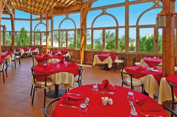Ellátás:Reggeli (6.30-9.30), ebéd (12.00-14.00), vacsora (18.30-20.30) svédasztalos büfé a Coral étteremben (a Lagoon részlegben elhelyezett vendégek számára) vagy a Gardenia étteremben (a Garden részlegben elhelyezett vendégek számára); késői reggeli a medence bárjában (10. 00-12.00); snackek a medencebárban (12.00-18.00); helyi alkoholos és alkoholmentes italok a kijelölt bárokban (9.00-24.00); all inclusive karszalag szükséges.