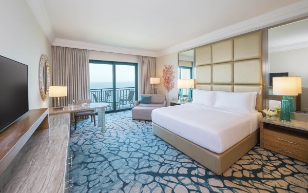 Szoba (Palm King Room) felszereltsége: 47 m2 alapterületű, elegánsan berendezett, erkélye/kilépője az Arab-öbölre vagy a Pálma-szigetre néz. Felszereltségéhez tartozik légkondicionáló, minibár (térítés ell.), TV, telefon, internetcsatlakozás, fürdőszoba káddal/zuhannyal, hajszárítóval, tea/kávéfőző, széf, vasalódeszka.