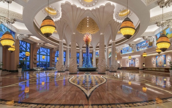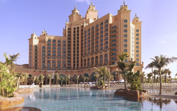 Az ismert építészeti csoda, a mesterségesen kialakított Pálma-szigeten épült luxusszálloda, melyből hihetetlen panoráma nyílik az Arab-öbölre. Fantázianevét az elsüllyedt városról kapta. 2008. végén nyitotta meg kapuit, 1539 szobával rendelkezik. A sziget hosszában 1,4 km-es homokos part húzódik. A szállodakomplexum kialakításában egyedülálló a világon. A nemzetközi repülőtértől kb. 35 km-re található.