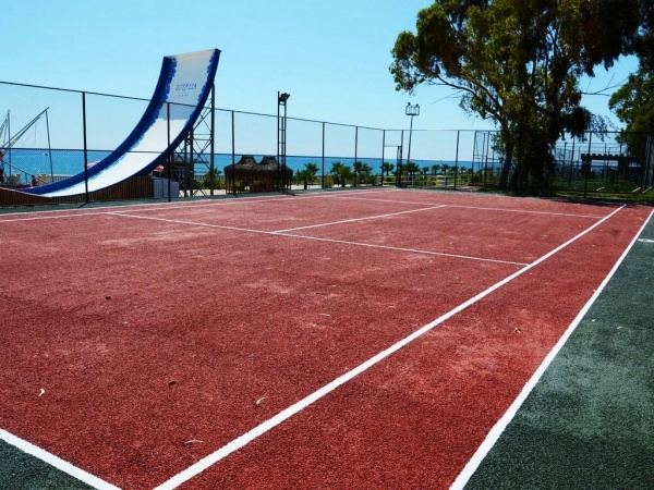 SZOLGÁLTATÁSOK: medencék napernyőkkel és napozóágyakkal o felnőtt medence o csúszdák o főétterem o bárok o nappali és esti animációs programok o élőzene o diszkó o amfiteátrum o fitneszterem o strandröplabda o darts o aerobik o vízi torna o kosárlabda o asztalitenisz o focipálya o szauna o TV sarok o wifi