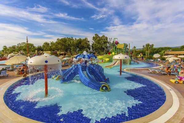 SZOLGÁLTATÁSOK: medencék napernyőkkel és napozóágyakkal o felnőtteknek fenntartott medence o csúszdák o főétterem o bárok (lobby, medence, tengerpart...) o cukrászda o nappali és esti animációs programok o élőzene o diszkó o amfiteátrum o strandröplabda o darts o aerobik o vízi torna o asztalitenisz o kosárlabda o TV-sarok o szauna o törökfürdő