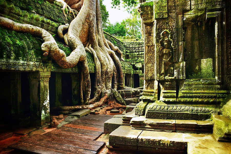 Később tovább megyünk az egyik leghíresebb templomba a Ta Phrom-ba. Ez a templom a feltárások során nem került teljes helyreállításra. A hatalmas fákkal benőtt romok, a széles udvarok remek alkalmat adnak izgalmas fotók készítésere is. Ez a templom volt az egyik sokat emlegetett felvételi helyszíne a Tomb Raider-nek is.