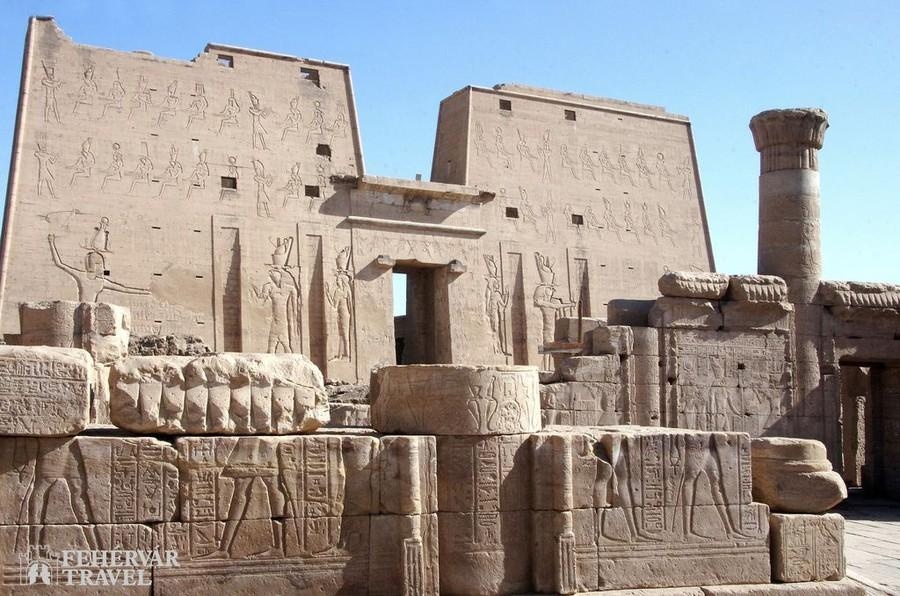 A Nílus bal partján található Edfu városa, körülbelül félúton Asszuán és Luxor között. Az itt található Hórusz-templom a Krisztus előtti I. századra készült el, korának legteljesebb egyiptomi emléke. Reggel látogatás a templomban, majd továbbhajózás. Az egyiptomi utazás egyik legnagyobb élménye a nílusi hajóút (a part menti, ősi módszerekkel művelt földek a szubtrópusi növényzettel és a földeken dolgozó emberekkel, a sivatagi tájak, a falvak, ahol megállt az idő stb.).