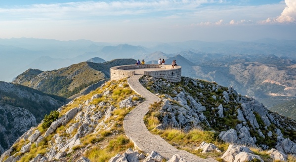 Montenegró régi központja, a Lovćen-hegy és esti Budva