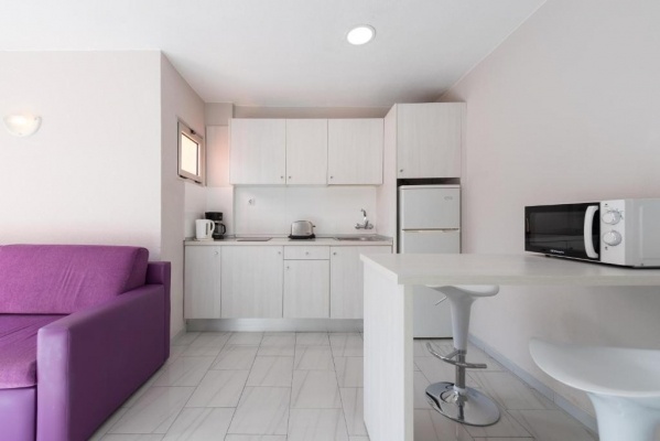 Szállás: A világos apartmanok nemrégiben felújításon estek át, és saját balkonnal rendelkeznek, kilátással a medencére. Az apartmanokhoz széles napozóterasz tartozik medencével és napozóágyakkal.