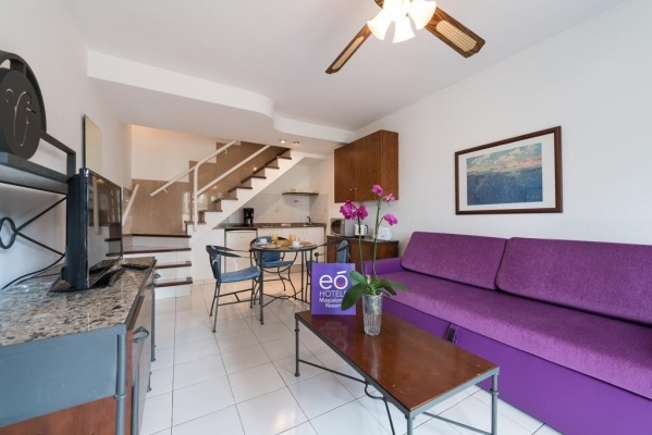 Szállás: Az EO Maspalomas Resort apartmanjai modern berendezéssel, erkéllyel várják Önt és családját. Minden villában felszerelt konyhát talál, amelyben hűtőszekrény, kávéfőző is alapfelszereltség. A nappaliban kanapét, síkképernyős TV-t talál.