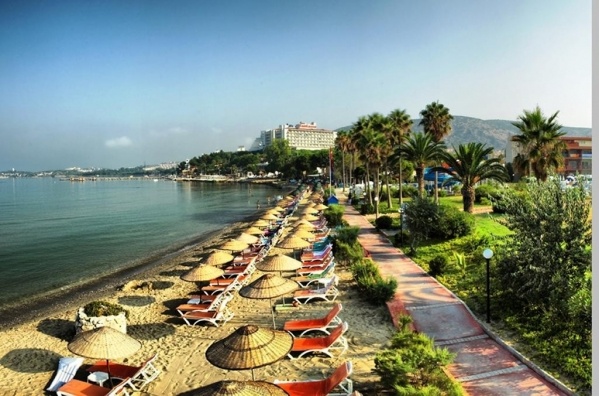 A 4 csillagos szálloda közvetlenül a homokos tengerparton fekszik, csendesebb környezeteben. A városközpont éttermekkel, bárokkal és üzletekkel kb. 7 km-re, Artemisz temploma Efezusban kb. 25 km, a Grand Bazar (bevásárlóközpont) kb. 8 km. Nagyszerű választás családi nyaraláshoz.